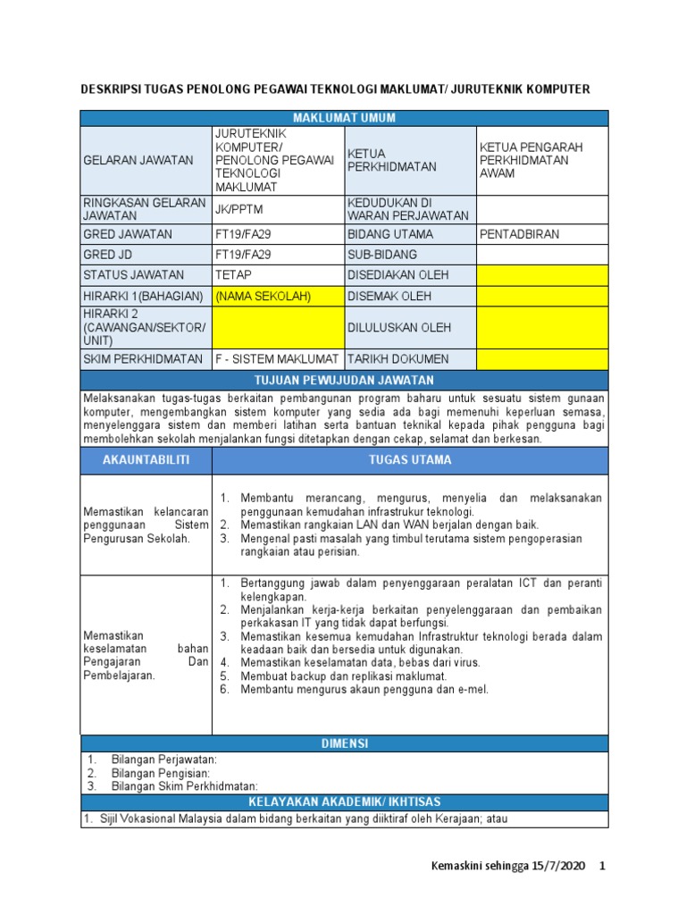 Jd Juruteknik Komputer Dan Penolong Pegawai Teknologi Maklumat Ft19 Ft29 Pdf